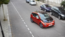 But, of course, public transport isn't so much fun as driving. Not as much fun as driving an i3. Oh, really? A tall, skinny-tyred, one-geared box? Well, there's a lot going for it. The wheels are pushed right to the corners. And for urban driving, you have the best of several worlds. You sit high and get a commanding view out, but your legs are straight ahead in a fairly sporty driving position, and the centre of gravity is low. That's because the battery and motor lie in an extruded aluminium punt frame, with the carbon-fibre passenger cell mounted above and decorated in thermoplastic outer panels. This construction sounds exotic, and it is: the engineers say more than a decade's worth of R&D went into making it affordable and repairable.