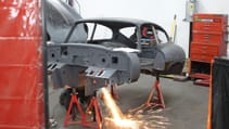 First came the small matter of stripping the entire thing to its bones over three days and giving it a good sandblast. Rather than confirm the team’s suspicions that the E-Type looked in relatively decent nick, it actually showed what 40 years of “neglect, cheap repairs and British dampness” had achieved. That latter is a reference to the weather, before you start laughing.