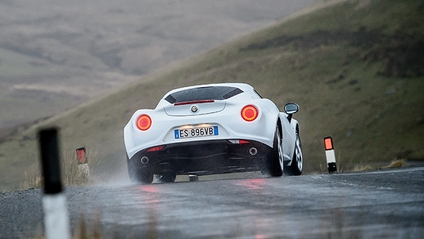 But perhaps the best thing about not driving the 4C is following the thing, its round tail-lights burning like cigarette tips through the spray. What a pretty car this is, from the plunging neckline of the front grille to shapely hips that could only come from Italy. The engine is framed in the glassy rear hatch, which looks like the one from a Ferrari 430. You can see all this for yourself in the pictures, but what you don’t get is a sense of presence. Maybe it’s because it’s so new and unfamiliar, or maybe it’s just those arresting looks, but somehow you just know it’s something a bit rare – like a celeb in a room of nobodies.