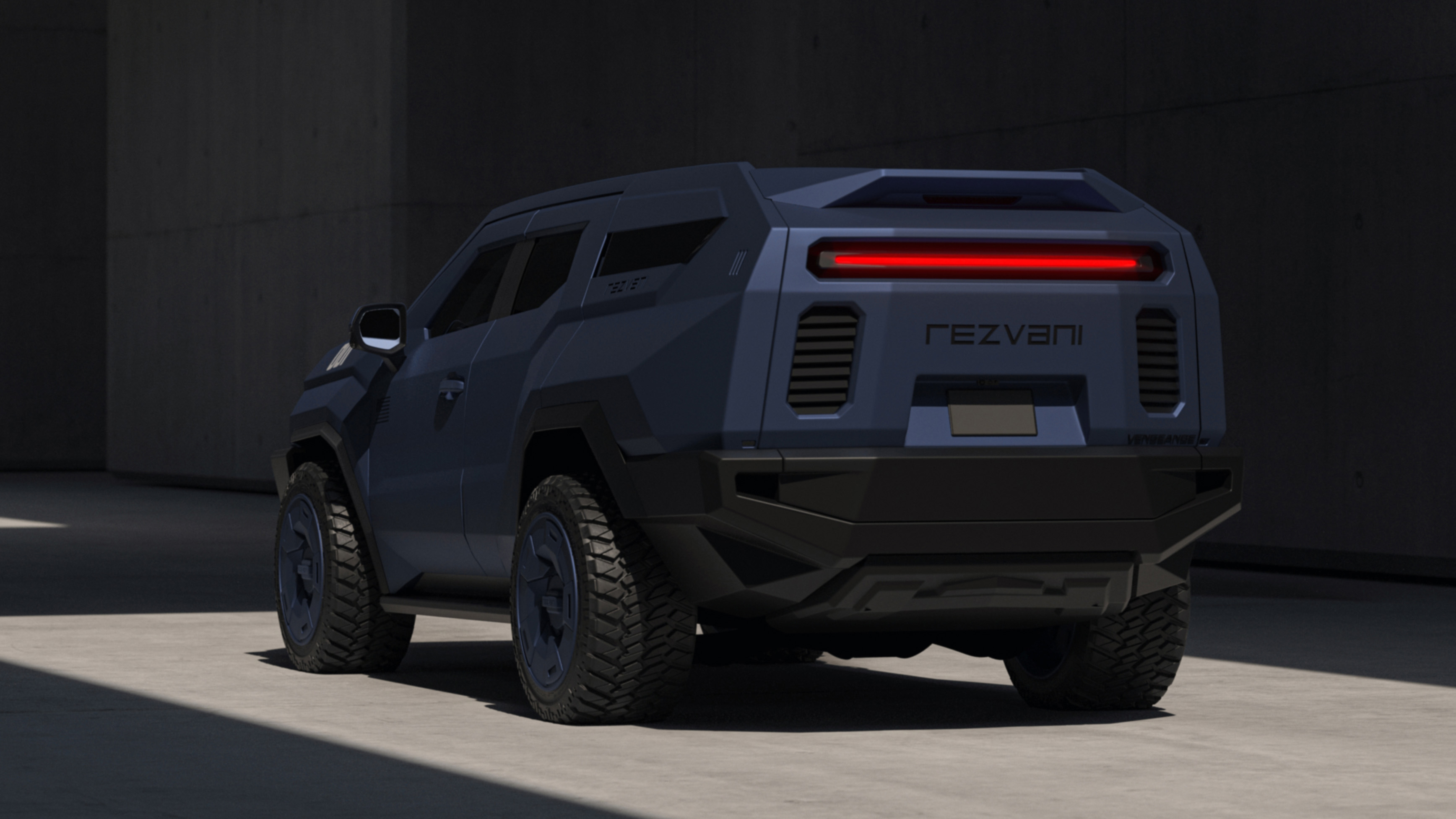 Rezvani – makers of the already rather terrifying Tank and Hercules 6x6 – says that 3D printing and ‘virtual sculpting methods’ were used to come up with the Vengeance’s beefy, military-inspired looks. There are 22-inch wheels wrapped in 35-inch off-road tyres, a huge amount of LEDs up front and a sci-fi style lightbar out back.