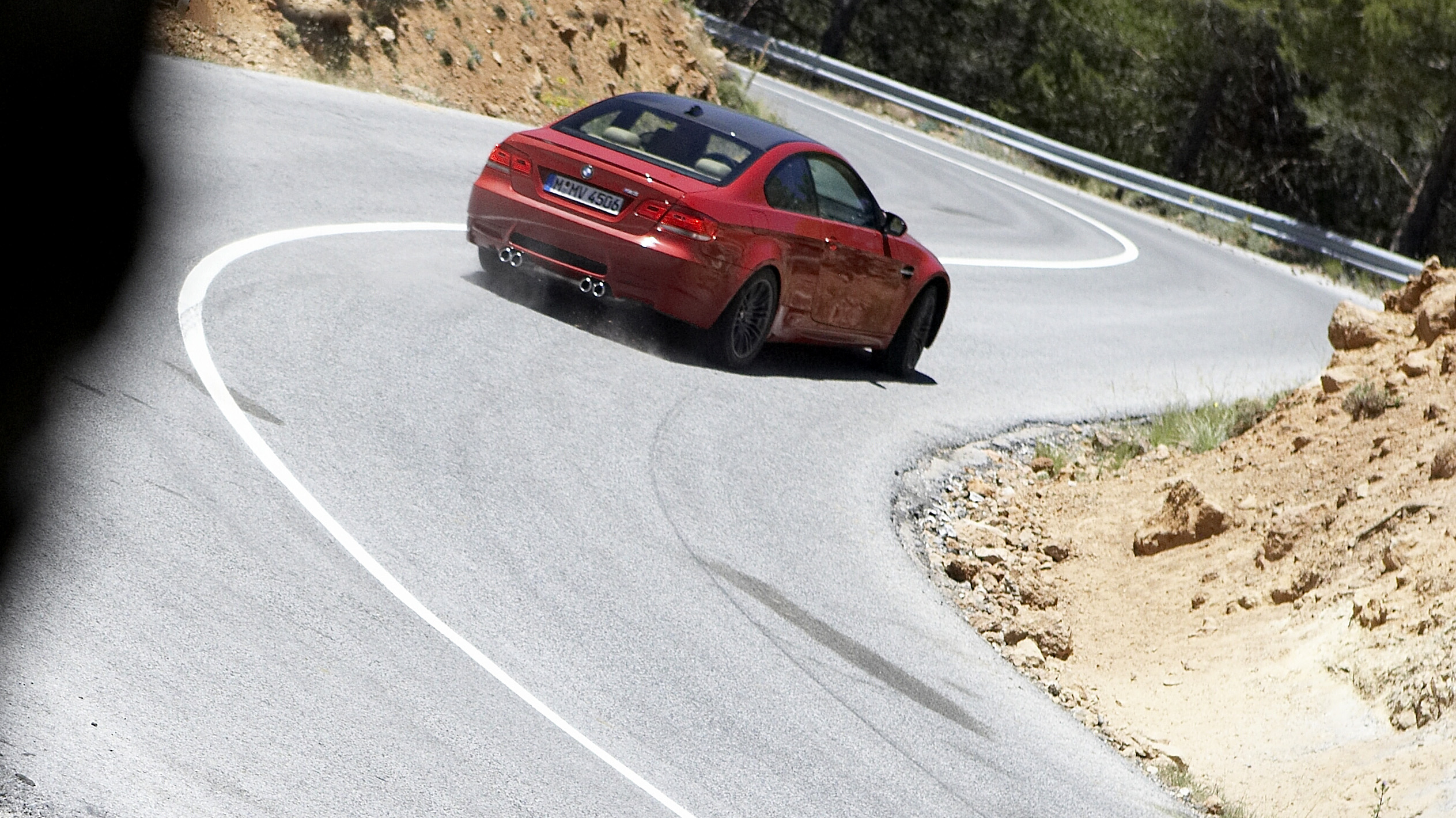 Thing is, even when everything is set to turbo-nutter mode, the car is very predictable – BMW has gone for balance. Insanely fast balance, true, but balance nonetheless. The reason being that when you point it at a tightening hairpin at an entirely unreasonable 45mph and throw in some inelegant mid-corner braking, the M3 reacts exactly as you expect it to. And not in the sense that it flicks you off into the rocks like a big red tiddlywink. I know this, because despite my better nature, I keep doing it on these sweeping Spanish mountain roads and the car isn’t in several large and indeterminate pieces.