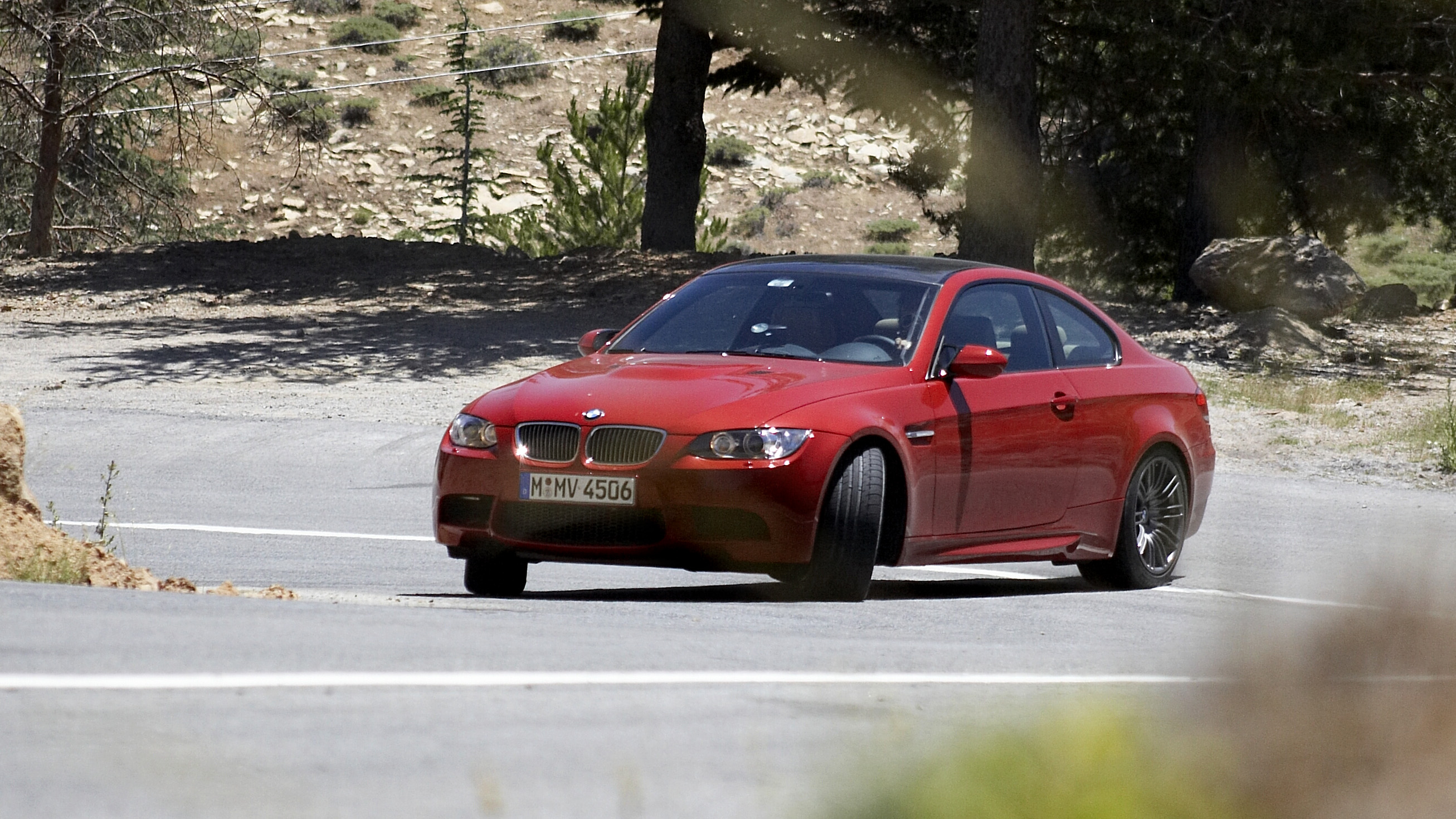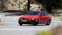 It’s not a surprise to hear that on roads like these, brakes take a complete hammering. Every section requires huge acceleration followed by lobbing out the anchors ready to take second or third gear bends. Weirdly, the M3’s stoppers never break even a significant sweat, and take an absolute age to get warm, squeaking like someone lawn-mowering a mouse village. We later find out that BMW has fitted competition pads (noisy as hell, but brick-wall effective with temperature), so judgement on the road-going system will have to wait.