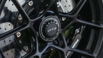 Springs first. Compared to the regular GT3 the fronts are 20 per cent stiffer, the rears seven per cent softer. The dampers are no longer adaptive, so switching modes on the steering wheel doesn’t affect the ride. They’re four-way adjustable (compression/rebound both for high/low speed), but you’ll be removing wheels and reaching into wheel arches to do it – tricky given the centre lock wheels are torqued to 700Nm (the wheel spats to just 15Nm though).